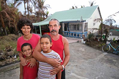 Après une distribution d'eau la veille, le nettoyage des cours a continué hier avec l'association Pasrel. Le restaurant Le Vieux Port a recommencé à servir quelques clients, seule concession à l'interdiction d'accès à la zone tandis qu'on commentait le nouveau supplément du Journal de l'île consacré à l'éruption : sous les yeux d'Honoré, sportif éprouvé qui connaît tous les sentiers du coin (et pour cause : il demeure dans la dernière case à gauche avant la descente des rampes), Lorrain, le rasta du Tremblet, son voisin d'en face, s'est découvert en photo dans ce numéro qui témoigne de l'épreuve subie depuis le 2 avril. Frédo, fidèle à lui-même, est monté pour la centième fois le long du rempart, s'est perché dans un arbre, pour commenter le spectacle, forcément sublime, à l'intention des auditeurs de Radio-Freedom... Photos François Martel-Asselin