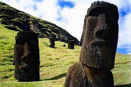 Colonisée par un groupe de Polynésiens vers le Ve siècle, l'île de Pâques est considérée comme la frontière extrême orientale de la Polynésie. Elle forme avec l'archipel de Hawaï au nord et la Nouvelle Zélande au Sud, une des limites de ces vastes parties du monde éclatée en îlots. Il y a deux millions d'années, le volcan Poike surgissait des eaux. Il fût suivi, un million d'années plus tard, par le Rano Kau, puis 760 000 ans après, par le Maunga Terevaka. Aujourd'hui éteints, ces trois volcans forment les trois extrémités principales de l'île.