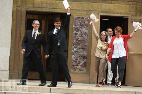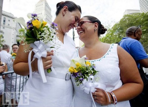 New-York est devenu, il y a peu, le 6ème Etat des USA à légaliser le mariage gay. Un droit tellement attendu que 823 unions étaient prévues ce dimanche 24 juillet, premier jour de l'entrée en vigueur de la loi.