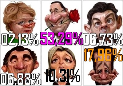 La Réunion est devenue "Hollande-Island" ce week-end en dotant François "de la Hola" du considérable score de 53,29% des voix. Placé en tête dans toutes les communes, toutes tendances politiques confondues, il a écrasé le président UMP sortant Nicolas "Tsar-concis" qui n'atteint pas 18% (17,96%) des suffrages, une contre-performance encore jamais enregistrée pour un président sortant. Par ailleurs, le père de Thomas, Clémence, Julien et Flora dépasse largement le score que leur mère avait réalisé en 2007, où la candidate PS n'avait totalisé "que" 46,22% des voix (contre 25,09% pour Sarkozy).